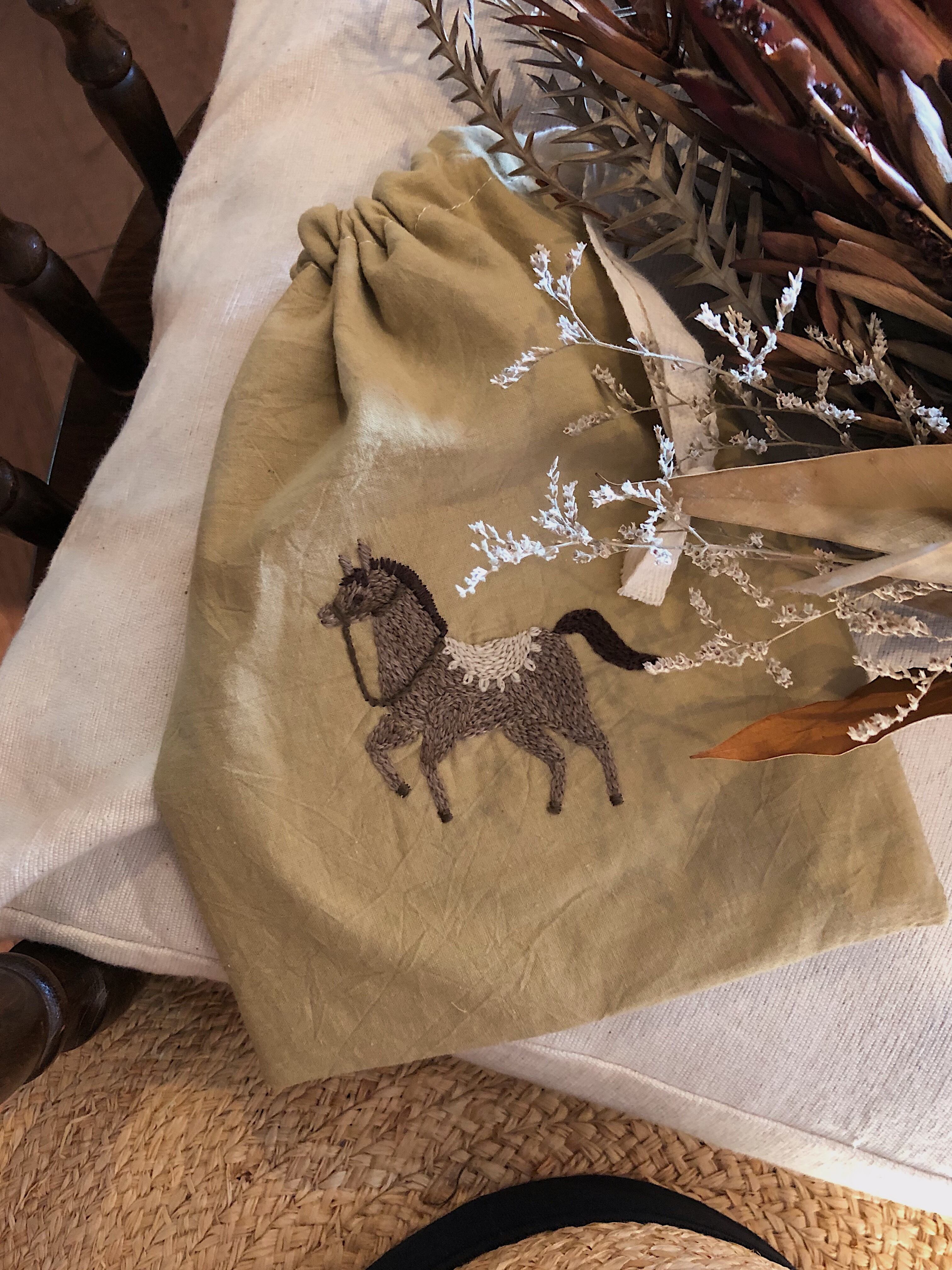 生地がとても可愛いくてPonyちゃんとの相性ピッタリな巾着袋が完成致しました。