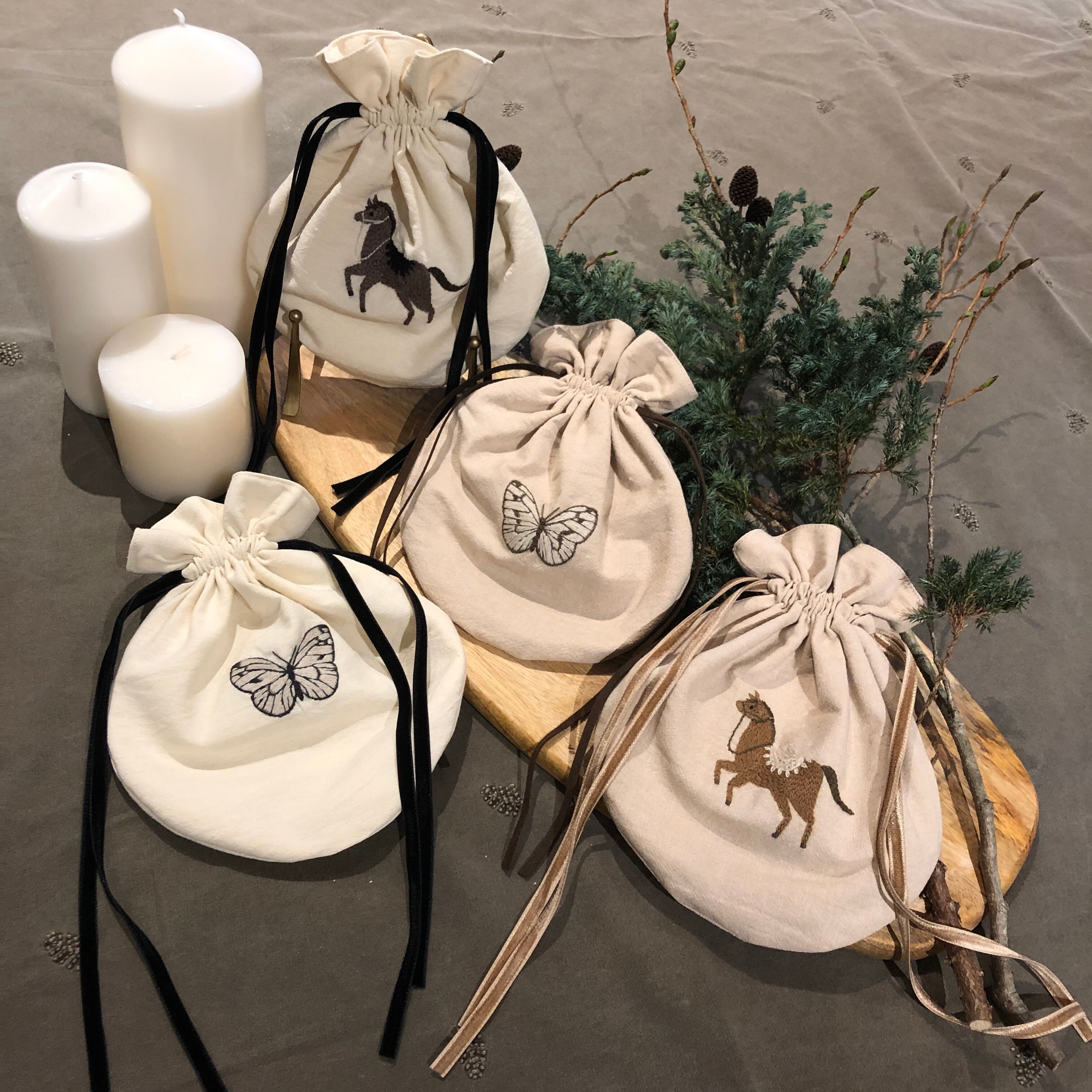 巾着のリボンの端は好きなように結んでお使い下さいませ。