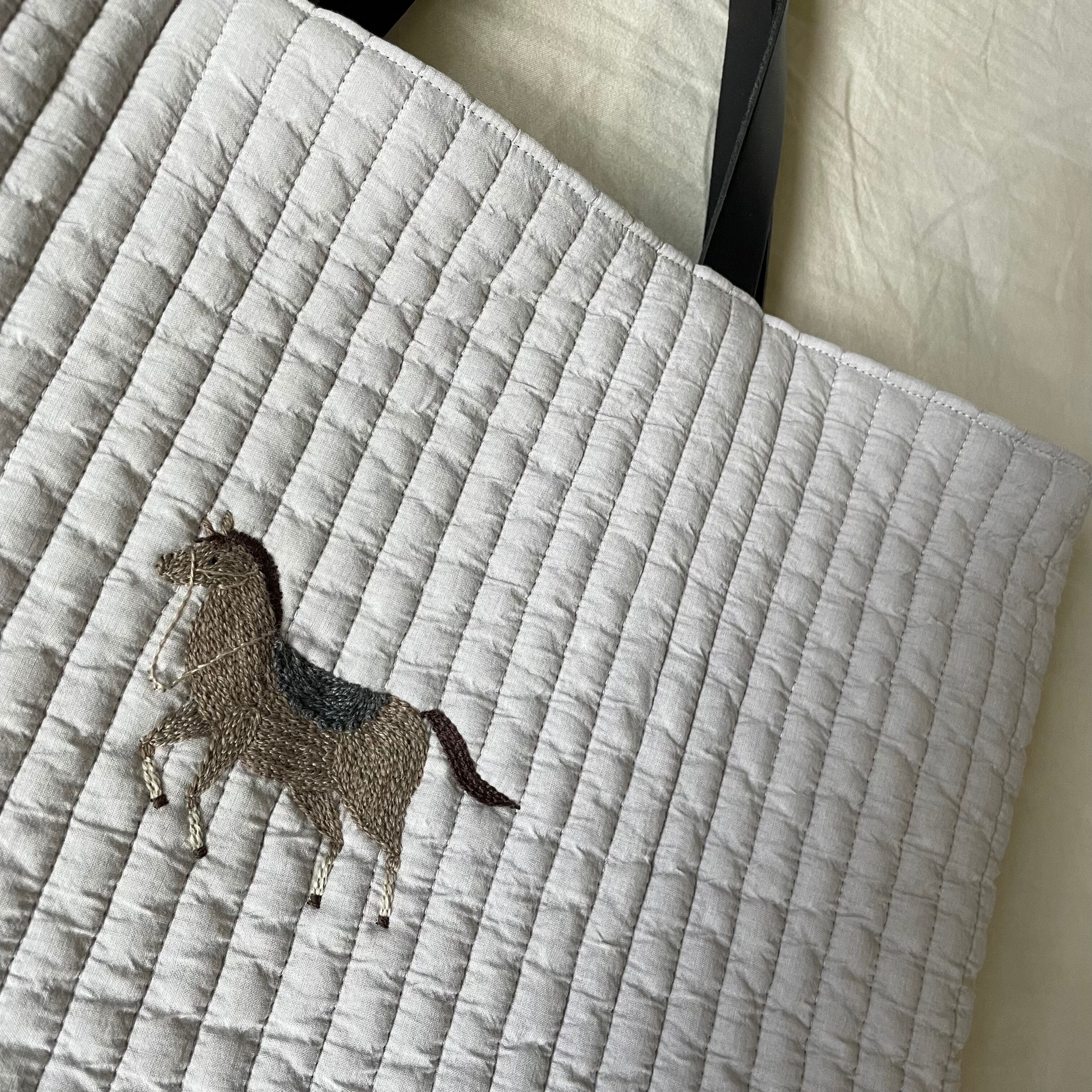 人気の韓国キルティング生地Nubiを使ったPony tote bagです。柔らかくて肌触りが良く、とても気持ちの良い生地です。内側には便利なポケット付きです。